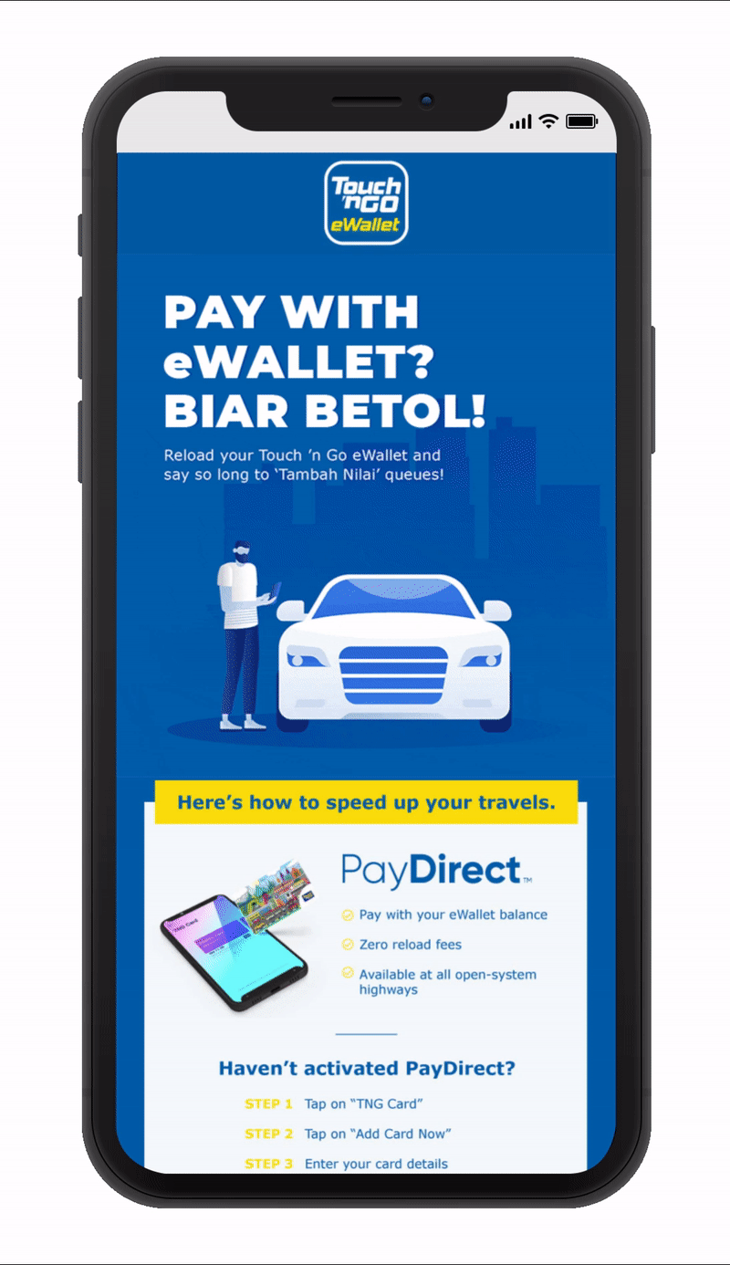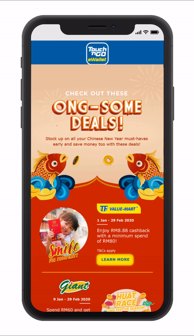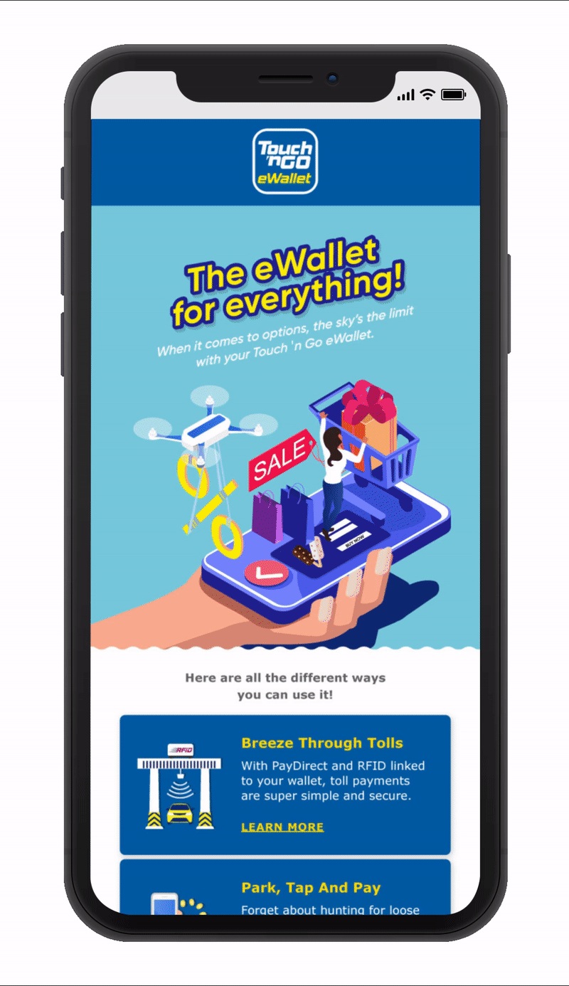 Touch 'n Go pushes brand eDM's regularly every month to highlight the brands USP's and app functions.